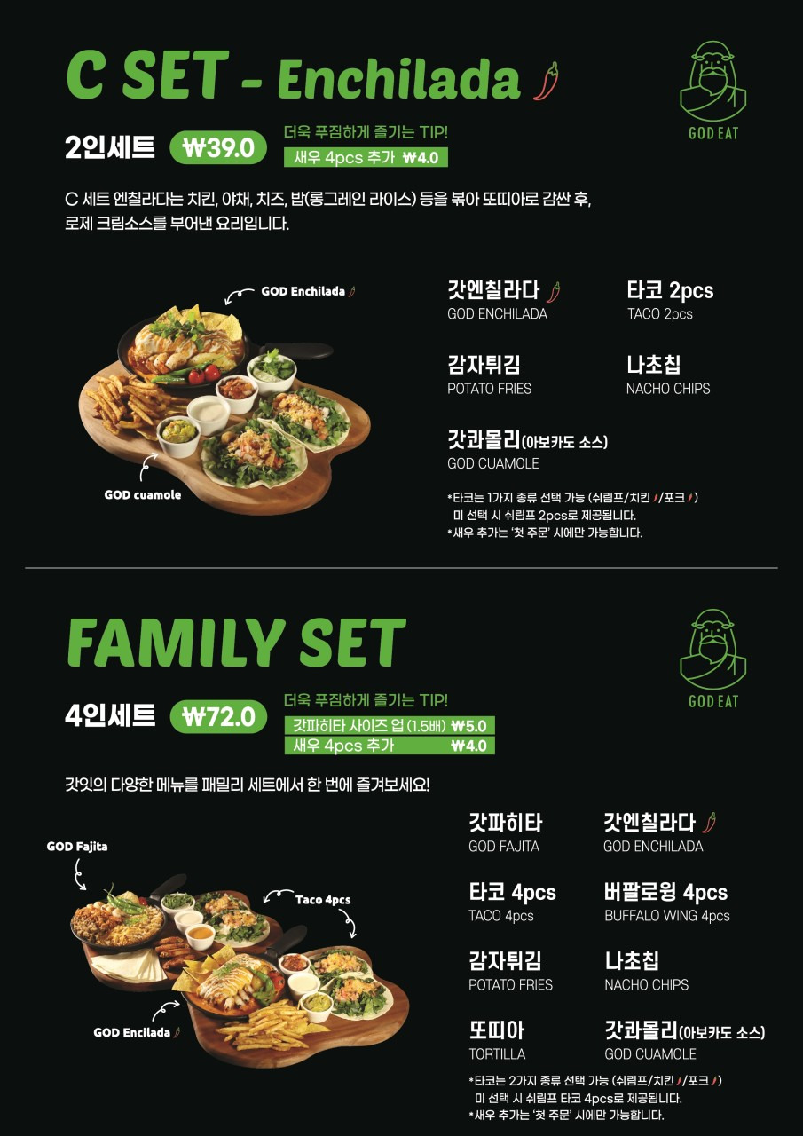 갓잇은 갈 때마다 정말 혜자스러운 양에 놀랍니다 ^^;; 👀 게다가 소스와 또띠아가 무한 리필이니 남자 두 분이 가셔도 세트 하나로 배부르게 드실 수 있어요! 양을 생각하면 가격도 합리적인 것 같아요! 💯